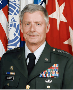 Sharp commanded troops in Desert Shield and Desert Storm, Operation Uphold Democracy in Haiti, and SFOR’s Multinational Division (North) in Bosnia. Sharp retired from the United States Army as a four-star general in September 2011, last serving as Commanding General, United Nations Command, Combined Forces Command, U.S. Forces Korea (UNC/CFC/USK) from 2008 to 2011.